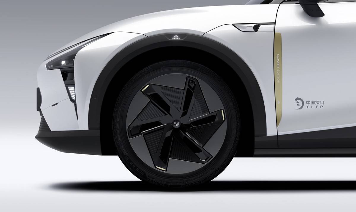 星瓷白作为“月色皮肤”的专属车身色彩,“我国探月”LOGO标识增强了限定版的独特性,选用探月航天器专属金色喷漆,配有“LUNAR EDITION”图标丝印,多层清漆工艺。21英寸空气动力学轮毂上交融探月元素,细节之处体现质感与美感。
