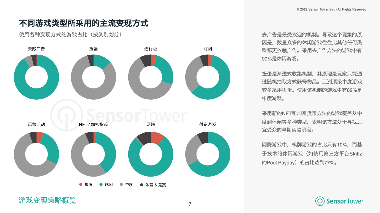 相对于其他变现办法,NFT和加密钱银在App Store和Google Play这两大商铺的商场占比较小。可是,选用这个新办法的游戏掩盖从中度到休闲的许多类型,标明该办法处于寻觅适合受众的前期试验阶段。