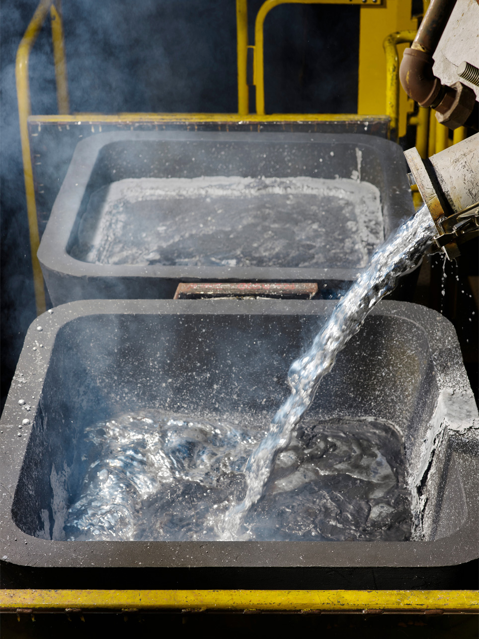 由左至右: (1) ELYSIS 在其坐落加拿大魁北克省的工业研讨与开发中心出产了第一批商用纯度的低碳铝金属。 (2)Apple 在减少其产品中运用的铝与其他金属形成的碳影响方面已取得了重大进展。低碳铝金属的技能打破进一步推进了这一进程。
