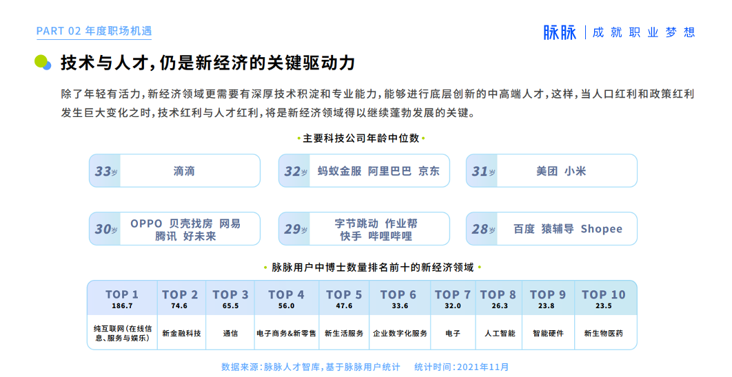 脉脉林凡以为,“共同富裕”、“高质量开展”等本年度影响最为深远的国策,将极大的促进人才质量、规划与收入的增加。而人才的改动与活动,又将带来整个社会与工业结构的调整与优化。